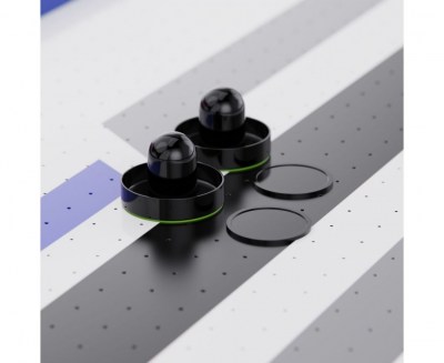 Аэрохоккей DFC AT-520 оснащён мощным вентилятором, работающим от сети 220 В, который создаёт равномерный воздушный поток по поверхности стола. За счёт этого шайба легко и быстро скользит по полю, обеспечивая максимальную динамику игры и реалистичный эффект настоящего хоккейного матча.