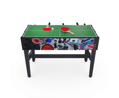 Игровой стол – трансформер DFC Pyrite 48” 4 в 1 для досуга детей и взрослых. Вентилятор работает от сети 220 В. Диаметр стержней для настольного футбола 12,7 мм.